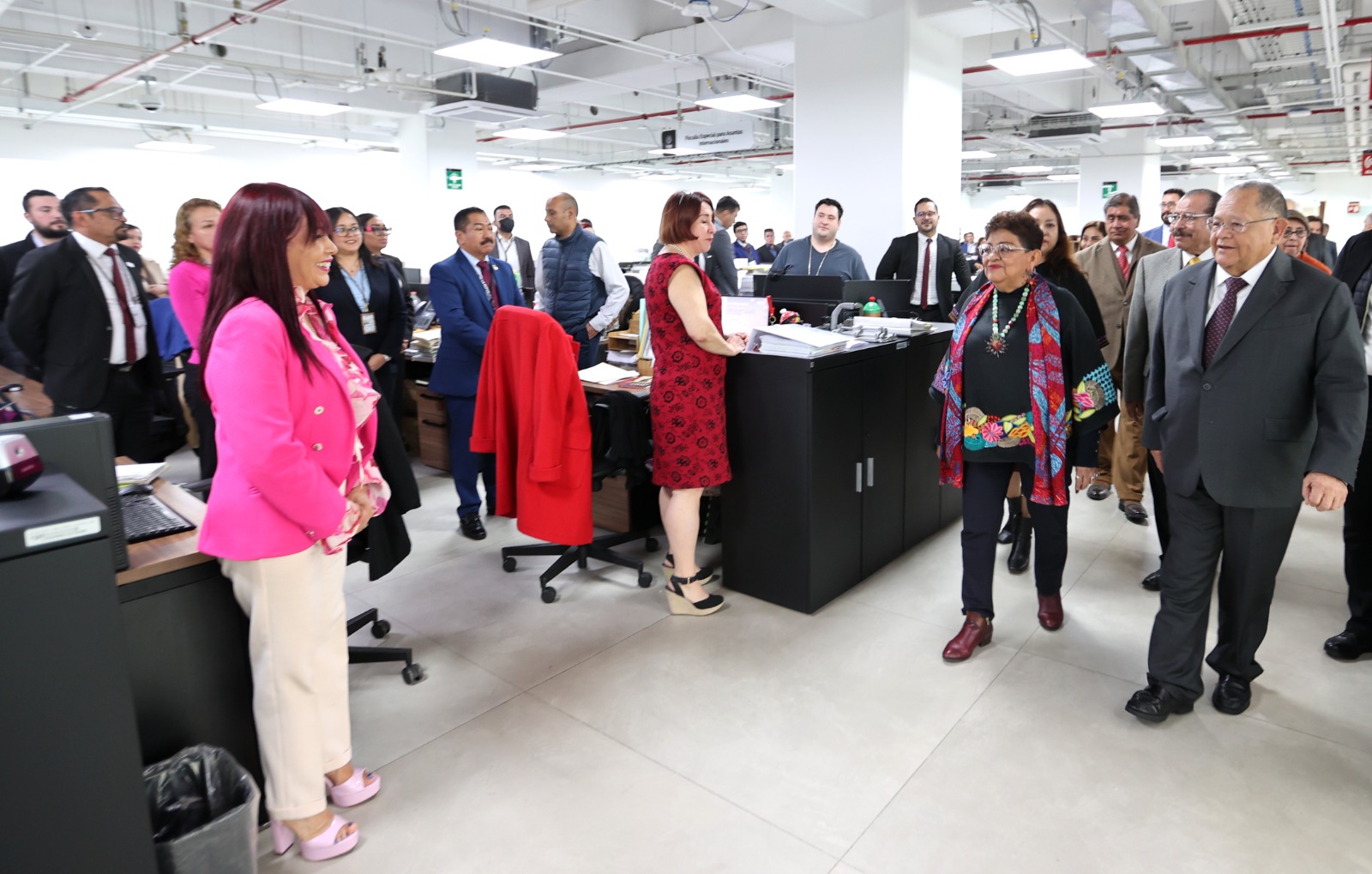 En el recorrido la acompañaron, Raúl Armando Jiménez Vázquez, titular de la FECOC; David Boone de la Garza, titular de la FECOR; Laura Angeles Gómez, Oficial Mayor; Richard Urbina Vega, quien encabeza la Fiscalía Especializada de Asuntos Internos; Ulises Lara López, Fiscal Especial en Investigación de Asuntos Relevantes; María de la Luz Mijangos Borja, de la FEMCC; Claudia Luengas Escudero, Consejera General; Oliver Ariel Pilares Viloria, titular de la Fiscalía Especial en Investigación de Delitos Fiscales y del Sistema Financiero, entre otros.