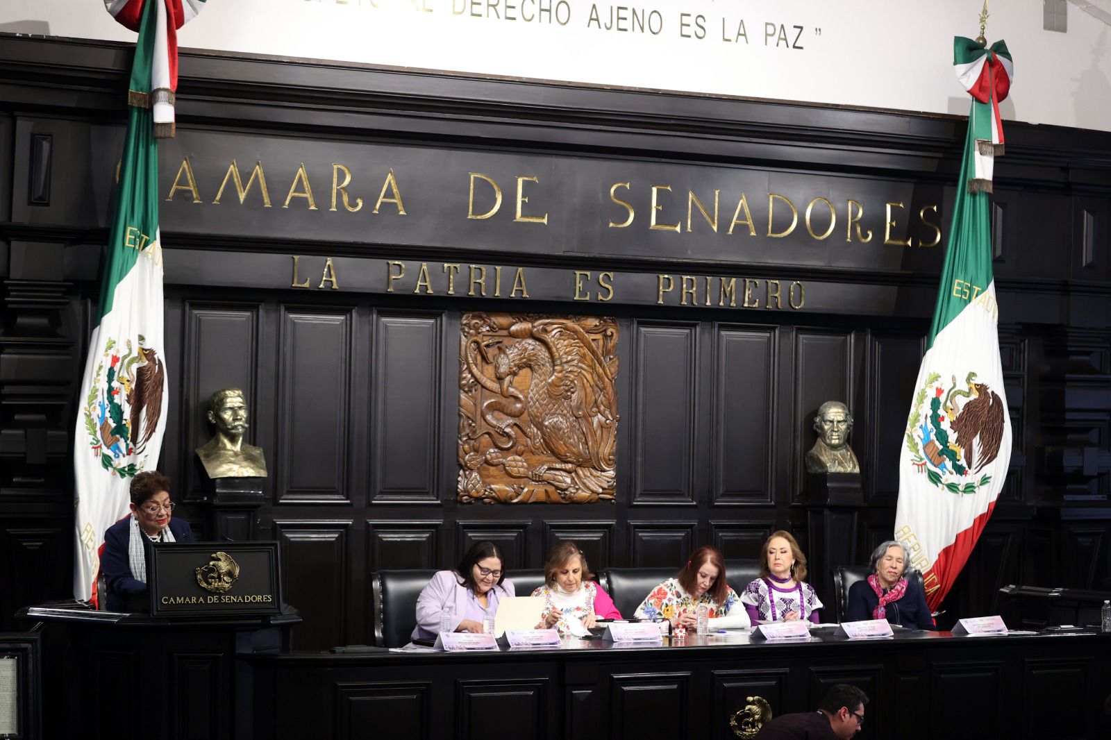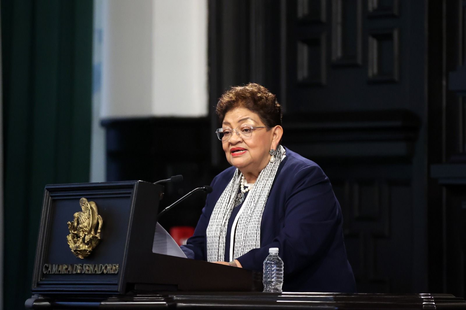 intervención, la presidenta de la Mesa Directiva de la Cámara de Senadores,